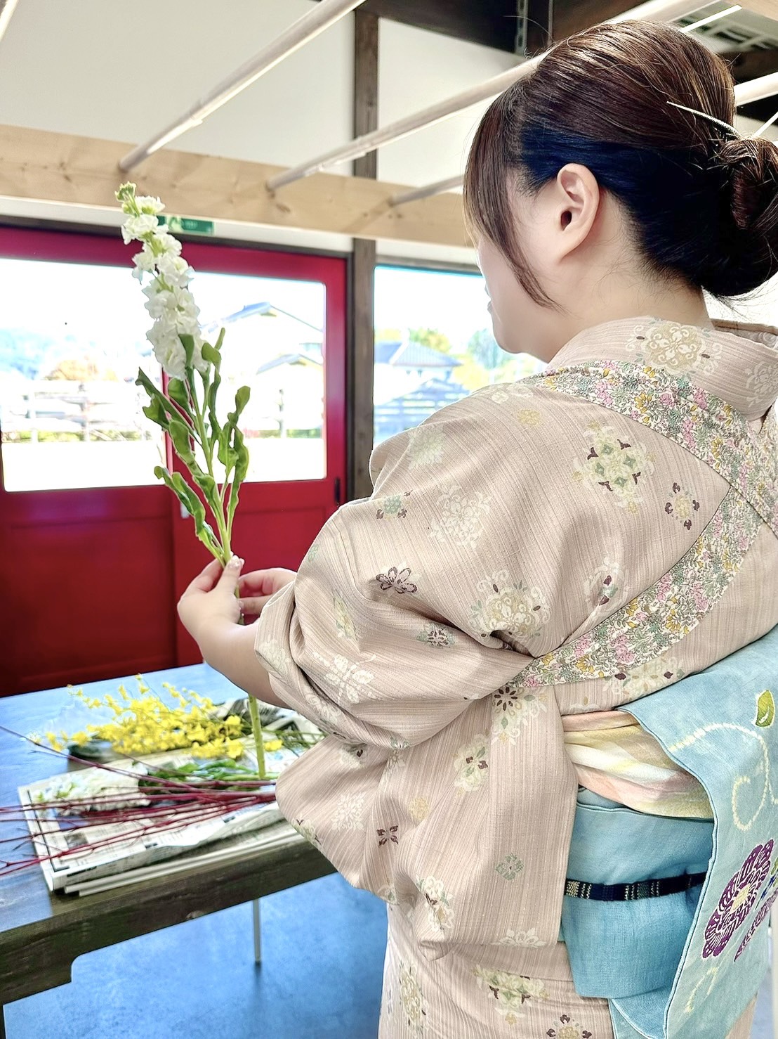 きものでいけばなをするとなんだかいつもより緊張しますよね。