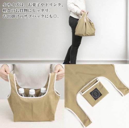 ちょっとそこまで出掛ける時に、程よい大きさで小さくたためる。ランチを買いにコンビニまで、ちょっとお菓子を買いに、そんなちょぴっとの買い物にピッタリな、大きすぎないエコバック。撥水生地だから、中の物はしっかり守り、汚れてもタオルやぬるま湯で、洗剤を使わず綺麗になる。薄くて軽い生地で収納ポケット一体型だから、持ち運びも軽くて小さくて楽チンです。