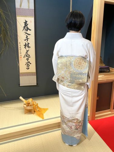 色留柄の訪問着コーディネート(気仙沼市・宮城) 2026.02.21 色留柄の訪問着に華文様の帯を締めた華やかなコーディネート。 エレガントな柄で品の良さが引き立ちますね。 なかなかこのような華やかなきものを見ることがないのでうっとりしてしまいます😊