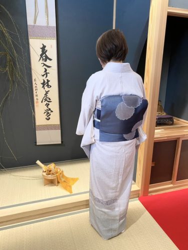 グレー系の付け下げコーディネート(気仙沼市・宮城) 2026.02.23 グレー系の付け下げに紺色の雪輪の帯を合わせた同系色でまとめた濃淡コーデ♪ 大人の色味で合わせつつもツヤ感のある帯を合わせて華やかさをプラス♪ 上品でクールなスタイリッシュコーデですね😳♡