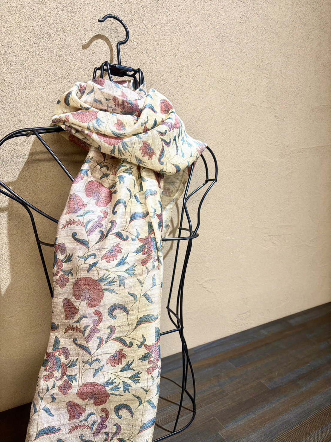 春にも秋にも使えるカラーで何と言っても柄がおしゃれ。