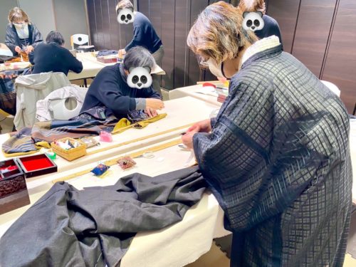 基礎クラスでは初めは主となる基礎縫いを教わり、大体の方が約1年かけてゆかたを縫っていきます。