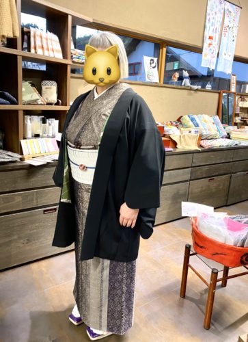 今日はお母さまからのうるしの羽織を自分の寸法に直したものだそう😊