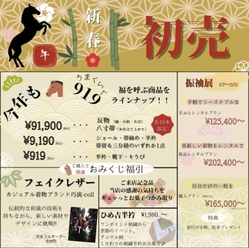 《ウマくいく》にちなんで新年一発目、皆様に喜んでいただけるような商品を取り揃えております🐎