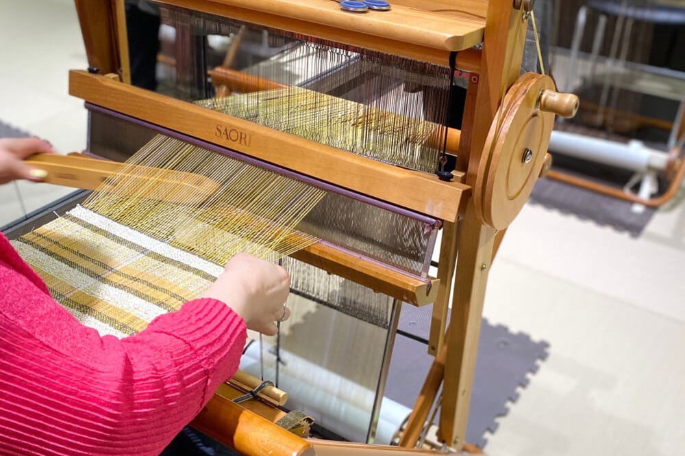 無心に織る。忙しい日々だからこそ、味わいたいひと時です。織りなした作品はストールでも袋物でも衣類にでも!